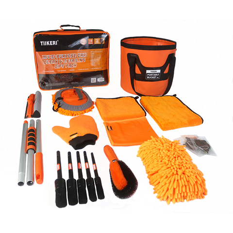 טייקרי 14pcs מכונת כביסה ערכת מקצועית לניקוי מכונית עם מגבות מיקרופייבר מברשת דלי ספוג דלי וכו '.
